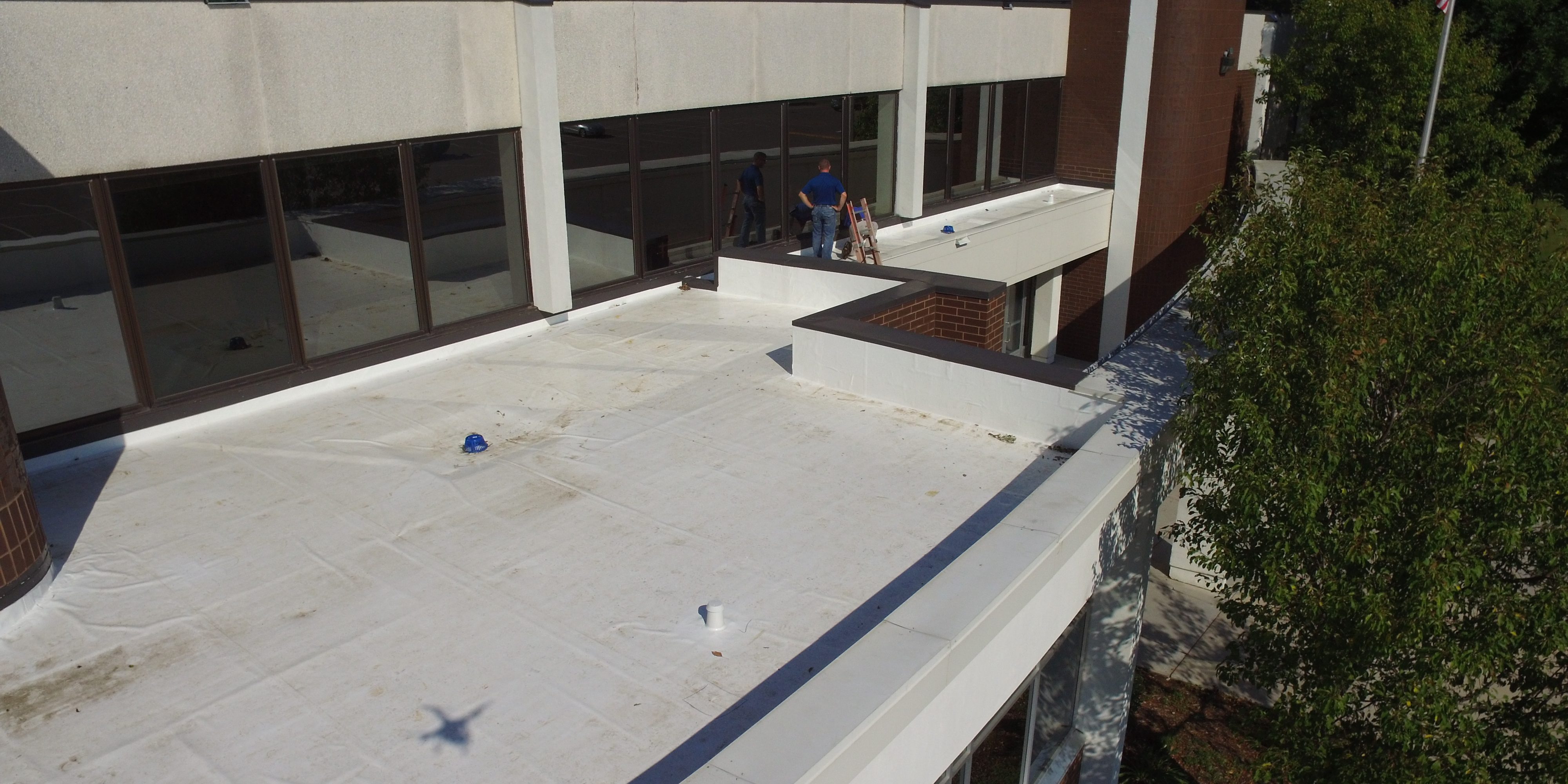 This project was a reroof of a ballasted EPDM roof. Ballast Rock was removed and a recovery board was installed over the old EPDM. A new 50 mil Duro-Last Membrane roof as installed with the induction welded technique.