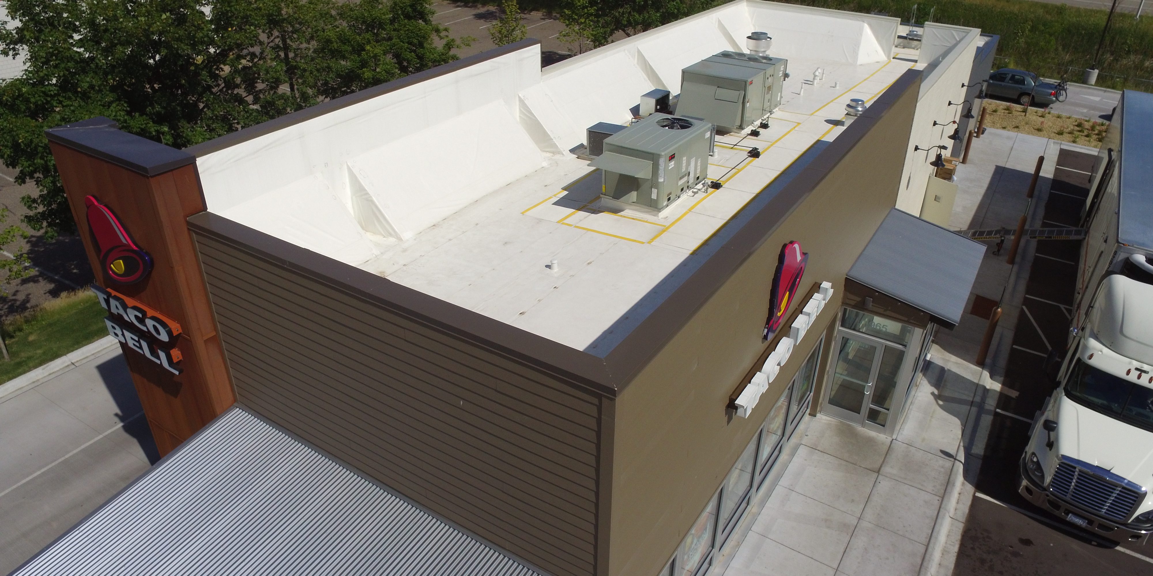 This is a new Construction Taco Bell in Maplewood Minnesota.   This project uses the Duro-Last Roofing Membrane, Duro-Guard ISO insulation, and a variety of products from Exceptional Metals.