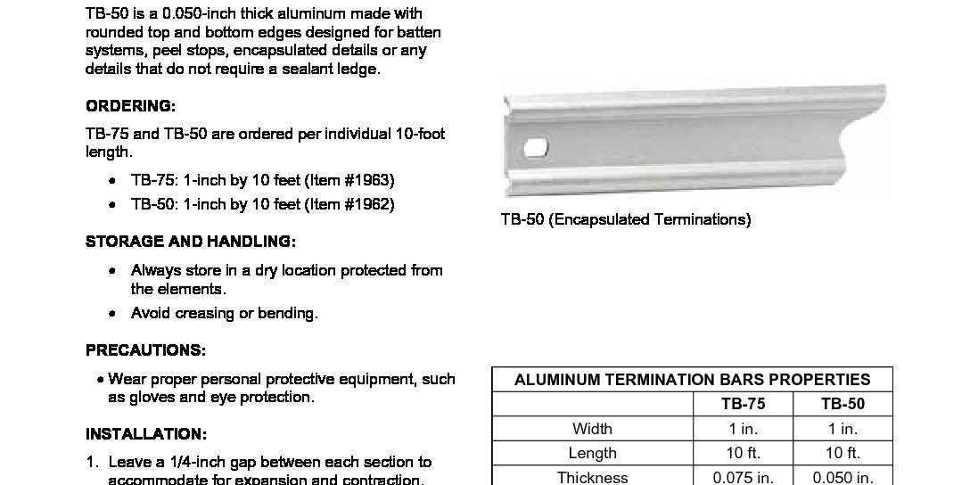 Do you prefer an aluminum termination bar versus our vinyl termination bar? We now have 2 different types available! TB-50 which is for terminations that do not require a sealant edge and TB-75 which has a sealant ledge for terminations that require a finished caulk joint. Pricing is all in our updated price books which contractors can find online on your online contractor portal. Let me know if you should have any questions! Aluminum_Termination_Bars